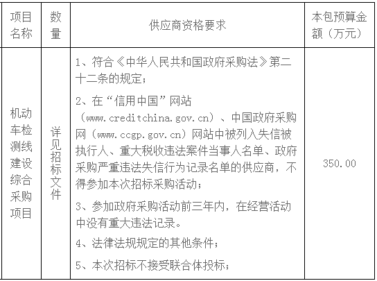 機動車檢測線建設(shè)綜合采購項目招標(biāo)公告